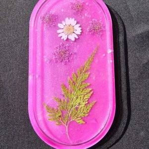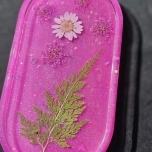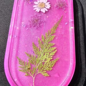 Handmade Resin Tray! Perfect gift or a treat for yourself. Beautiful and unique floral design with pink/magenta glitter.